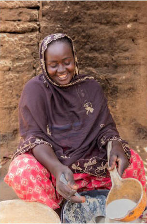 She shared her story while continuing to process furah, a drink made by mixing milk or water with pounded millet flour.